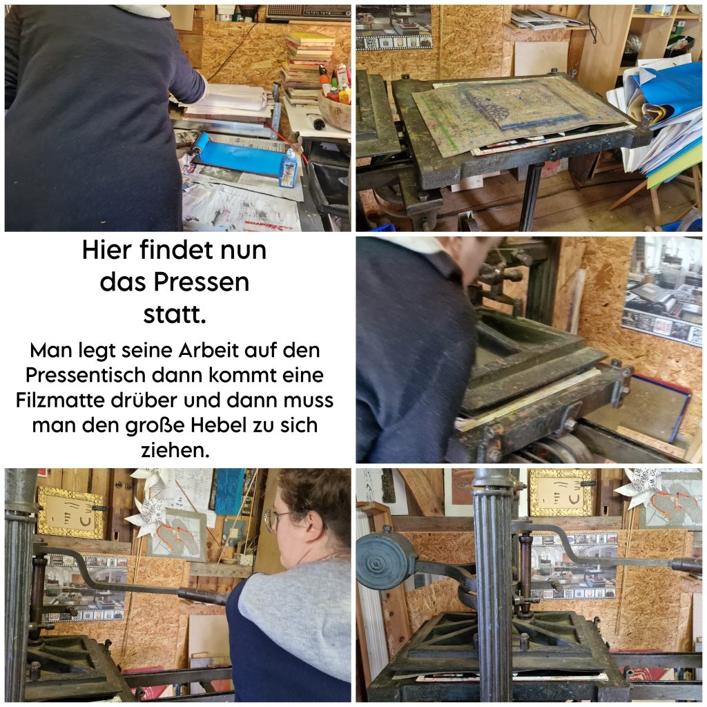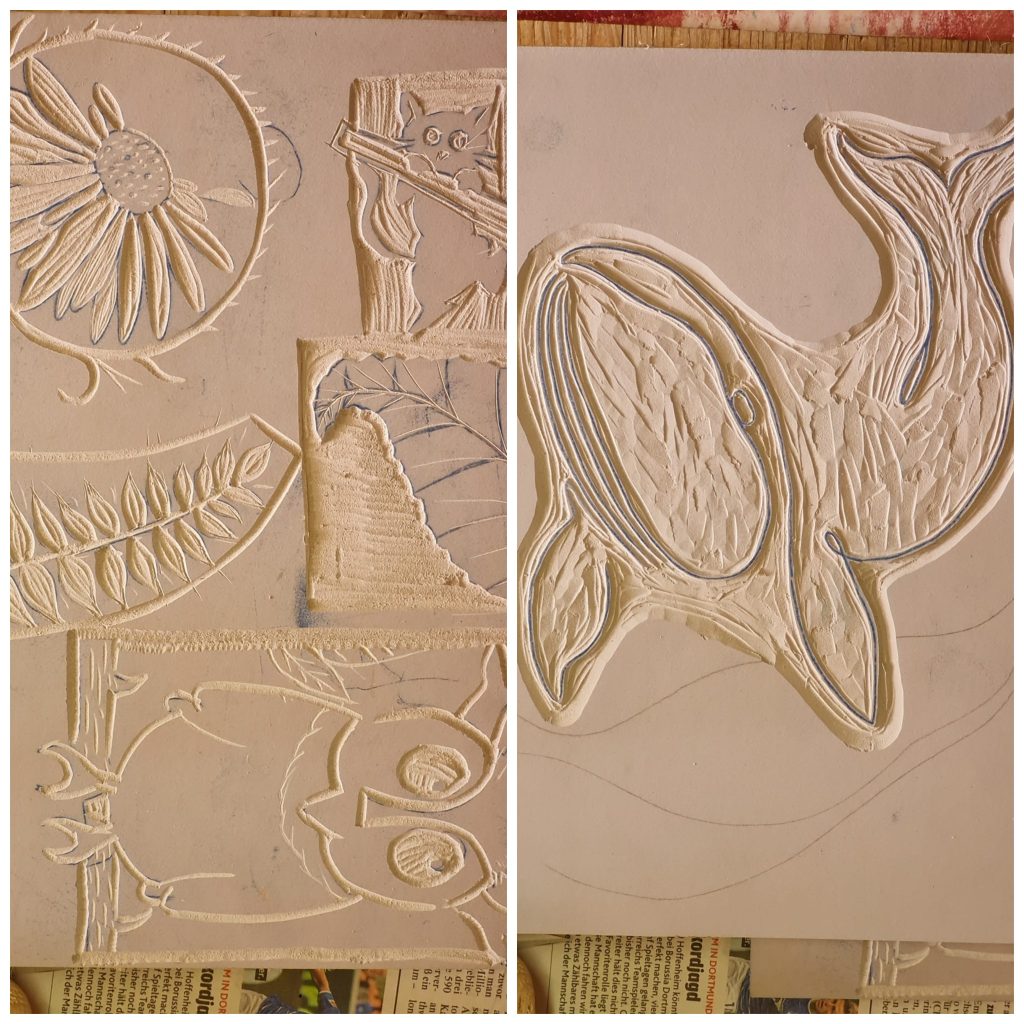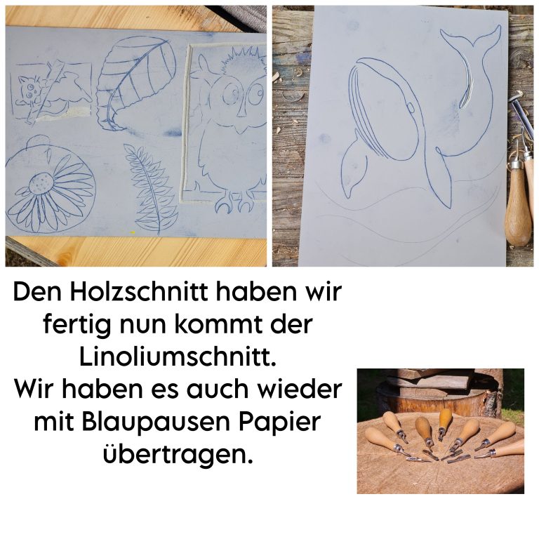 Das Bearbeiten ist deutlich leichter. Auch Detailgetreue Skizzen können hier viel besser ausgearbeitet werden. Mit dem Linoleumschnittbesteck konnten wir unsere Arbeiten schnell und sauber erarbeiten.